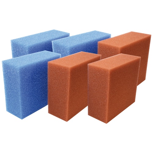 Original Oase Filterschwamm Komplett-Set BioSmart 14000 / 16000 für den vollständigen Austausch der Filterschwämme de Oase Durchlauffilter BioSmart 14000 und 16000. Das Komplett-Set enthält 3 passende rote Ersatzschwämme und 3 passende blaue Ersatzschwämme.