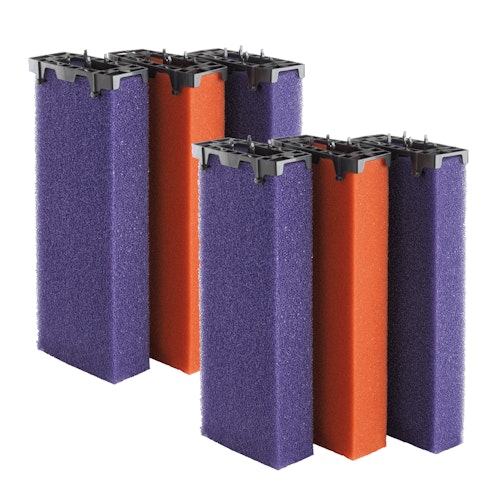 Original Oase Filterschwamm Komplett-Set FiltoMatic CWS 25000 für den vollständigen Austausch der Filterschwämme des Oase FiltoMatic CWS 25000. Das Komplett-Set enthält 2 passende rote Ersatzschwämme/Patronen und 4 passende violette Ersatzschwämme/Patronen.