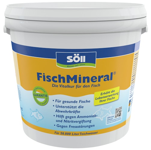 FischMineral ist die Vitalkur mit entgiftender Wirkung für alle Teiche mit Fischbesatz. FischMineral stellt fischfreundliche Wasserwerte ein, neutralisiert Ammoniak und Nitrit und sorgt somit für eine artgerechte Lebensumgebung für alle Teichfische. Mit lebensnotwendigen Mineralien und Spurenelementen hilft es gegen Stress und beugt parasitären Erkrankungen sowie Hautverpilzungen effektiv vor. So trägt FischMineral zu einer normalen, gesund-vitalen Funktion der Abwehrkräfte bei.  FischMineral ersetzt das Aufsalzen und schützt die empfindlichen Schleimhäute von Fischen auf natürliche Art.